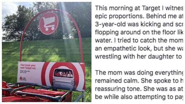 Mom and writer Katie McLaughlin was in Target recently (because if anything kid-related is gonna go down in a store, it’s for sure going to be Target) when she noticed a mom desperately trying to check out while her child was kicking and screaming. Since we’ve all been there, McLaughlin wanted to offer some support in the moment — without stepping on the mom’s toes.
