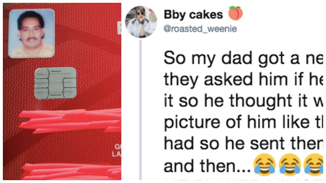“So my dad got a new credit card and they asked him if he wanted a picture on it so he thought it was gonna be a tiny picture of him like the previous card he had so he sent them a picture of him and then…HE PLAYED HIMSELF BRUH!”