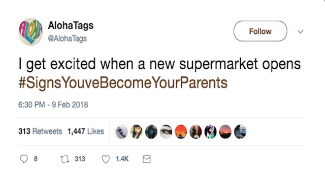 You know that moment when you hear your mom or dad’s voice in your voice? It sneaks up on you, and all of a sudden you’re like, holy crap, I’ve literally become my parents. Well, you’re not alone. There’s currently a Twitter thread trending called #SignsYouveBecomeYourParents — and it’s the most relatable thing on the internet right now.