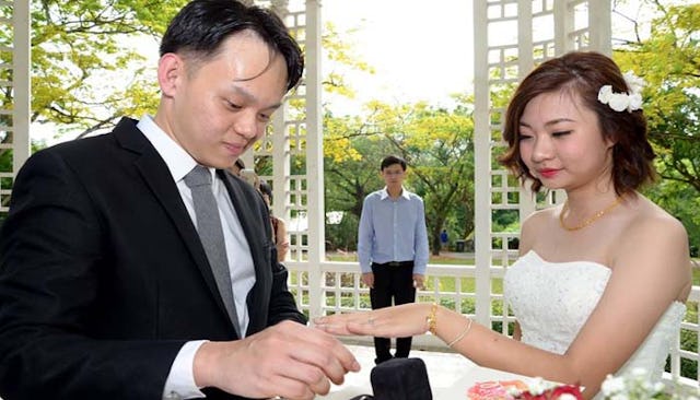 Nothing says “love” like a close up of a woman literally jamming a wedding ring on her man’s finger.