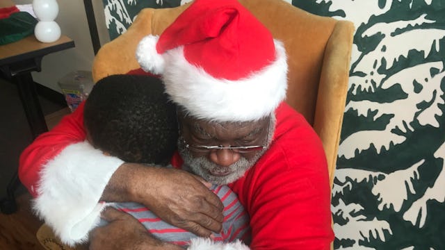 As I urged my children to follow me and allow the next kids a turn, my five-year-old son turned and embraced Santa. And luckily, I captured the beautiful moment when brown arms were wrapped around brown arms.