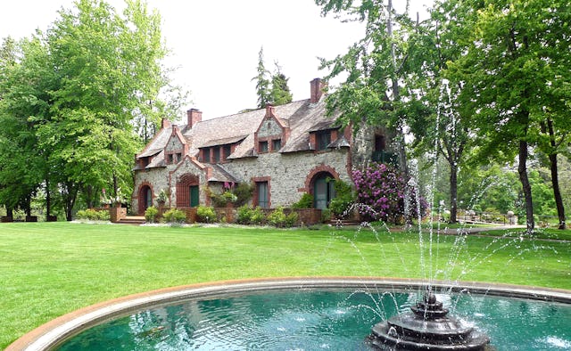 We paused now near the mansion’s large swimming pool, which was fed by a stream of water exiting the mouth of a sculpted stone mountain lion, and went down a series of steps built into the hill. The water in the pool was brown and murky. I would really have liked to see this pool with real pool water—looking more Architectural Digest-y than state park-y—and asked my boyfriend if he had the same hankering. He said that he did not. This made me feel a little alone in the world, since I think swimming pools are the best—and possibly only—evidence that God walks among us.