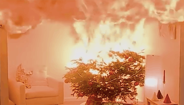 A live Christmas tree burn conducted by the U.S. Consumer Product Safety Commission (CPSC) shows just how quickly a dried out Christmas tree fire burns, with flashover occurring in less than one minute, as compared to a well-watered tree, which burns at a much slower rate,” the site explains.