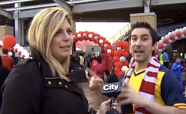 Indeed they would. In fact, the men defended their actions as “f*cking hilarious.” They didn’t seem to clue in to the fact that their actions are degrading to female reporters as well as to women everywhere. One man, the one in the yellow jersey who was later identified as Shawn Simoes, said, “We’re not the only people …. It happened in England …. You’re lucky there’s not a fucking vibrator in your ear like in England because it happens all the time.”