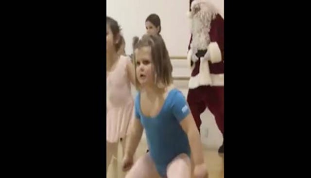 A little girl’s dance recital has gone viral because she managed to upstage Santa and remind us all how we feel in every group exercise class we’ve ever been to.