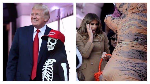 Donald and Melania held some Halloween festivities at the White House yesterday. Some 6,000 adults and children showed up to celebrate. Donald dressed as himself, and it was terrifying. Melania dressed as a woman who can stand to be near her husband for five minutes. And the visitors either dressed as adorable kids in costume or props for their MAGA-loving parents.