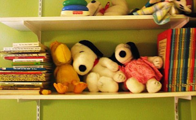 But one item—I hesitate even to say one thing. Can I say one guy, one person? One treasure has received special treatment. My stuffed Snoopy, a doll-sized toy from when I was in third grade, held pride of place on my bed (with Snoopy bedsheets) for years, until I discovered boys, cars and other teen pleasures. Snoopy still graced my bed then, like a decorative pillow, but I didn’t play with him anymore. He stayed home when I went to college. He lived in the closet for a while. But when I had my first baby, Snoopy came back to keep a stitched-on eye on the nursery. Thirty years later, he was keeping the top bunk safe at the summer cabin, and now he’s come back to my place.