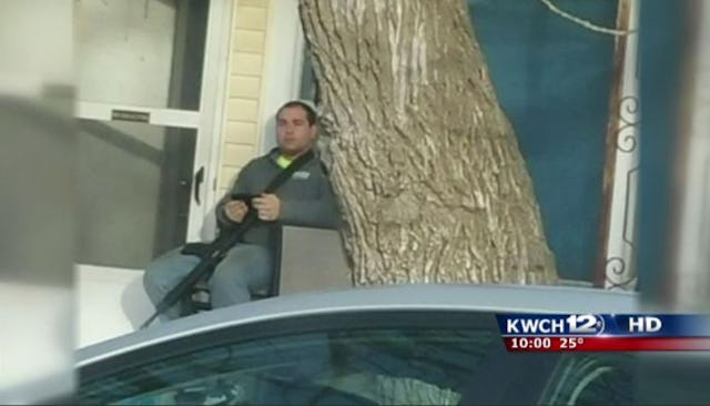 A Kansas man is scaring locals by sitting on his porch with his rifle