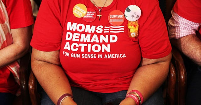 A member of Moms Demand Action for Gun Sense in America listens during a forum September 10, 2019 on Capitol Hill in Washington, DC. Alex Wong/Getty