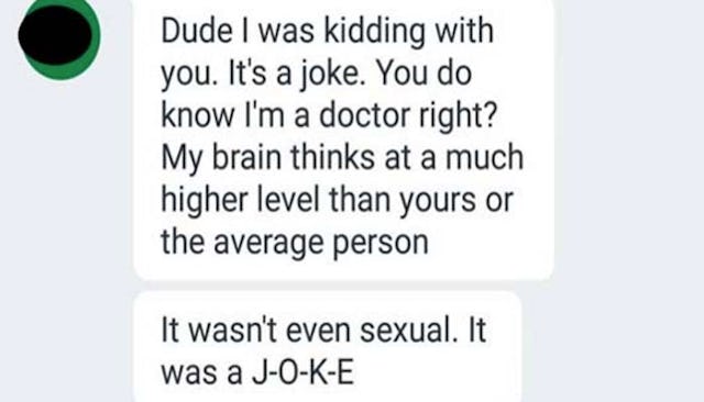 Just, no. It’s tough out there, ladies. At least he let his crazy show before this poor woman endured a date with this psycho.