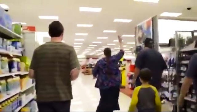 Oh my god, lady. Enough. This crazy lady is traipsing through Target screaming awful obscenities with her kids in tow… and she represents what’s right?