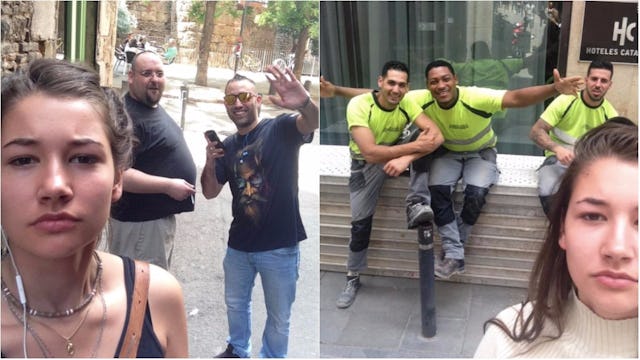 Along with the selfies, she sometimes includes the words that were shouted at her before taking the photo.