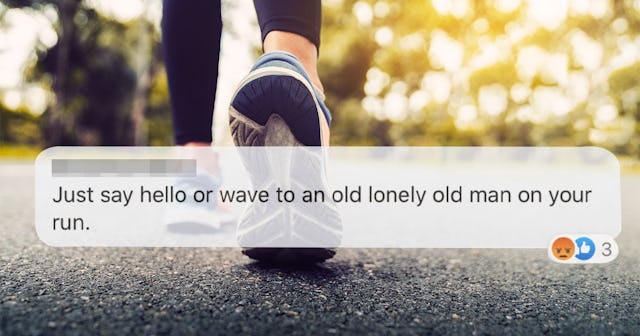 “Last summer, while I was out for a run, a man yelled and waved at me from his porch,” the post from Right Brained Mom began. “I had my earbuds in and my music on, but he was loud enough to stop me in my tracks. He looked upset, so my first thought was that he was going to warn me about a bear ahead. [But when] I pulled my earbuds out and asked, ‘What’s up?’ he leaned forward in his chair, looking quite annoyed, and said, ‘You run by my house all the time and you never say hello, or even wave.’ This man was not within my line of vision. He was set far back from the road. Though he’d apparently been watching me, I had never seen him back there,” Right Brained Mom explained.