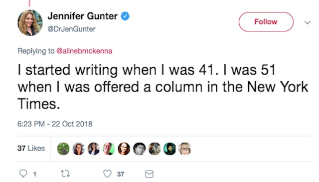 By Monday, her original tweet had inspired many more women to share later-in-life success stories, too. Like this awesome mom who knew that it was vital for her and her daughter that she have faith in her writing.