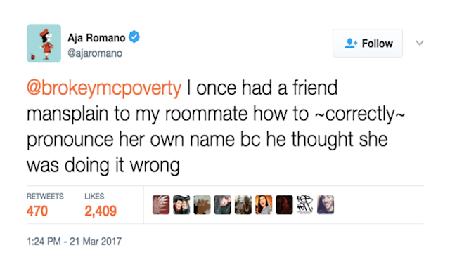 Men show up eventually in the thread to argue that mansplaining isn’t really a thing, because of course.