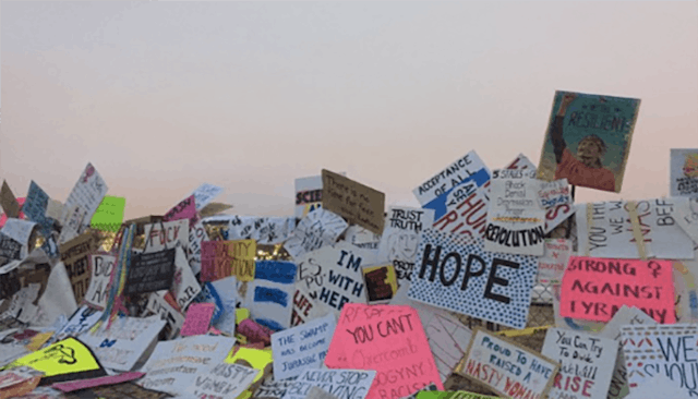 Women used their signs from the Women’s March to build a wall on the White House fence