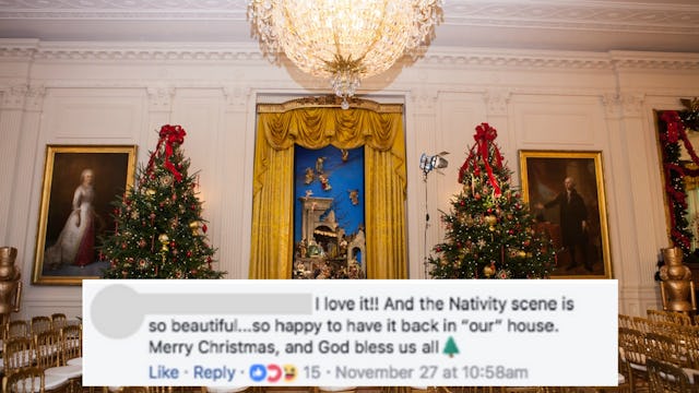 And yet, comment after comment after comment—literally dozens of them—celebrating President Trump saying “Merry Christmas” as if his predecessor had banned the phrase, despite ample video evidence to the contrary. Comment after comment thankful to have a Christian in the White House as if … well, I won’t even go there.