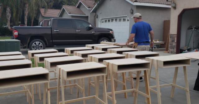 He explains to Scary Mommy that he is still in the process of finishing up the batch of desks.