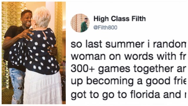 Twitter user @Filth800 played hundreds of Scrabble-esque “Words With Friends” games with an 80-year-old woman from Florida, and the two of them quickly forged a real friendship bond.