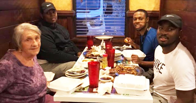 And others were just really, really damn happy to see the woman enjoying her meal with good company. “I’d hug you all if I could,” one Facebook user wrote. “I lost my grandma and seeing you all make this lady smile makes the world a better place.”