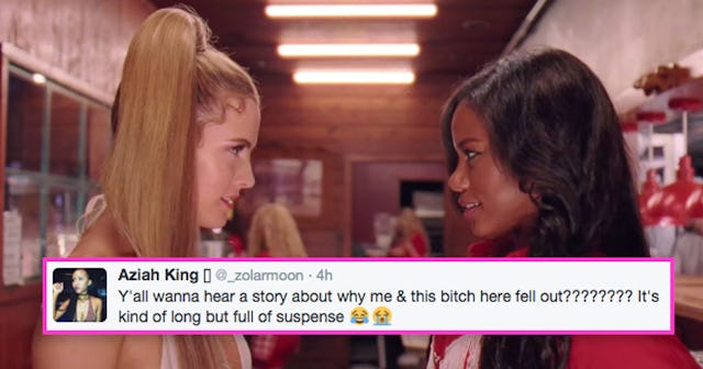 “You wanna hear a story about why me & this bitch here fell out? It’s kind of long but full of suspense,” begins both the Twitter thread and the movie trailer.